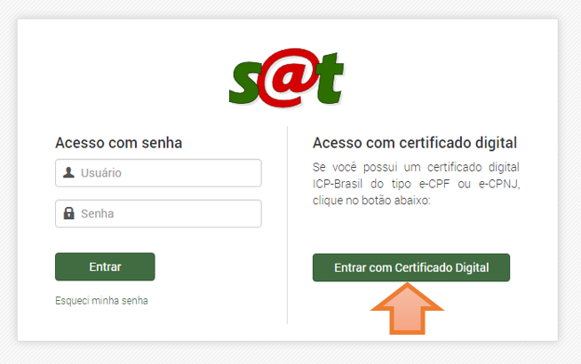 Como acesso o SAT utilizando meu certificado e-CNPJ ou e-CPF?