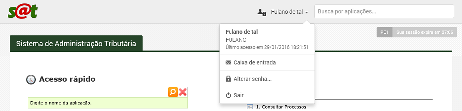 Importante: Para sair do sistema com segurança, sempre certifique-se de utilizar a opção "Sair" no menu na parte superior direita do SAT como ilustra-se a seguir: